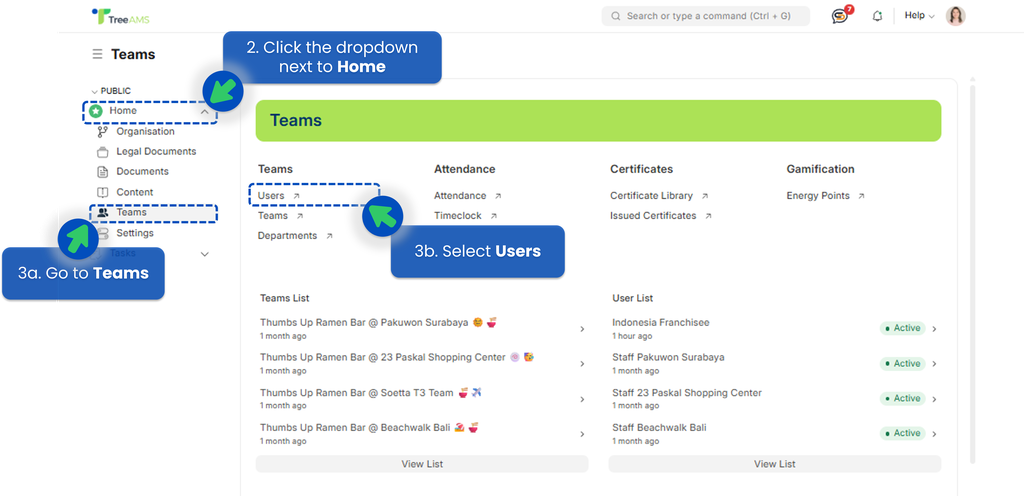 - Select Teams -> Users.