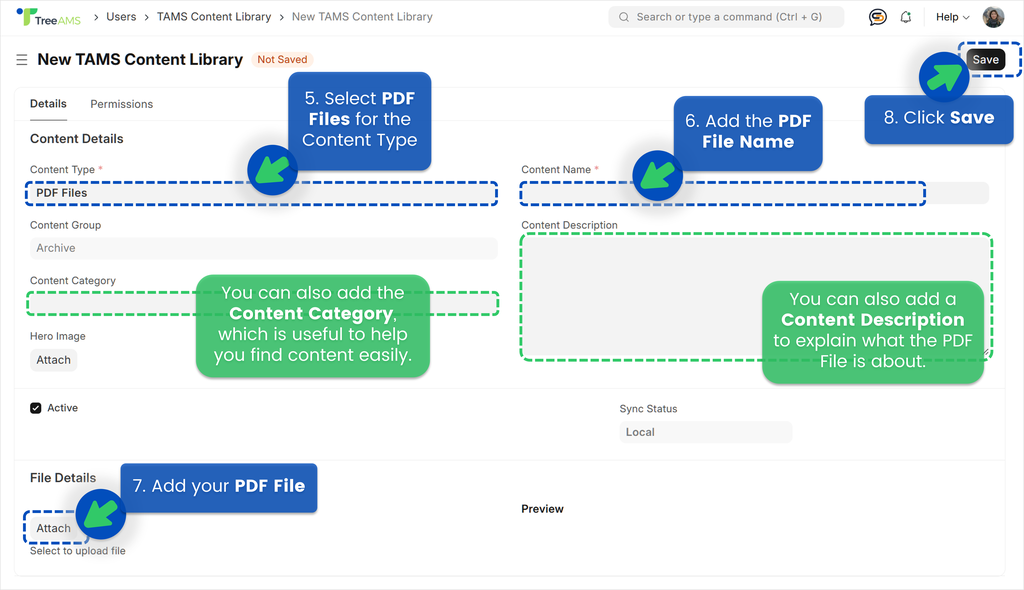 - For the content type, select PDF Files. Refer to Content Types: Blocks vs Collections to learn more about different content types available on TreeAMS