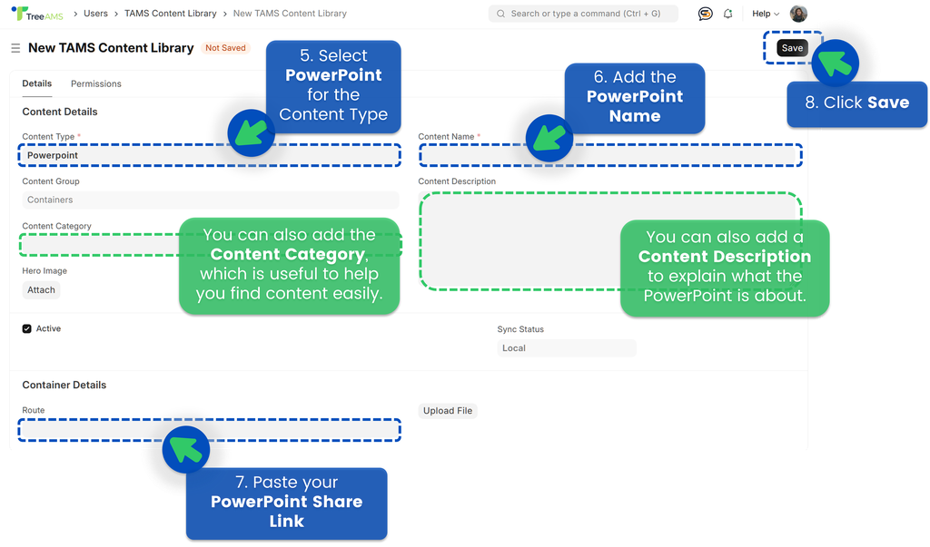 - For the content type, select PowerPoint. Refer to Content Types: Blocks vs Collections to learn more about different content types available on TreeAMS