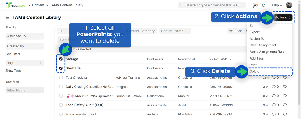 π‘Quick Tips: If you have added any of these deleted PowerPoints to content collections, don't forget to delete these PowerPoints from the content collections too!