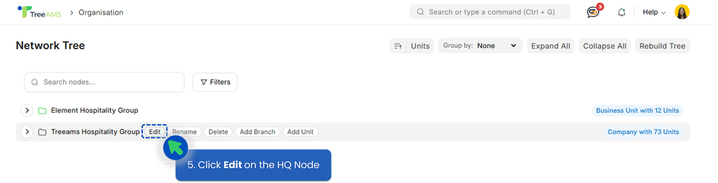 - Hover over the HQ node and click Edit.