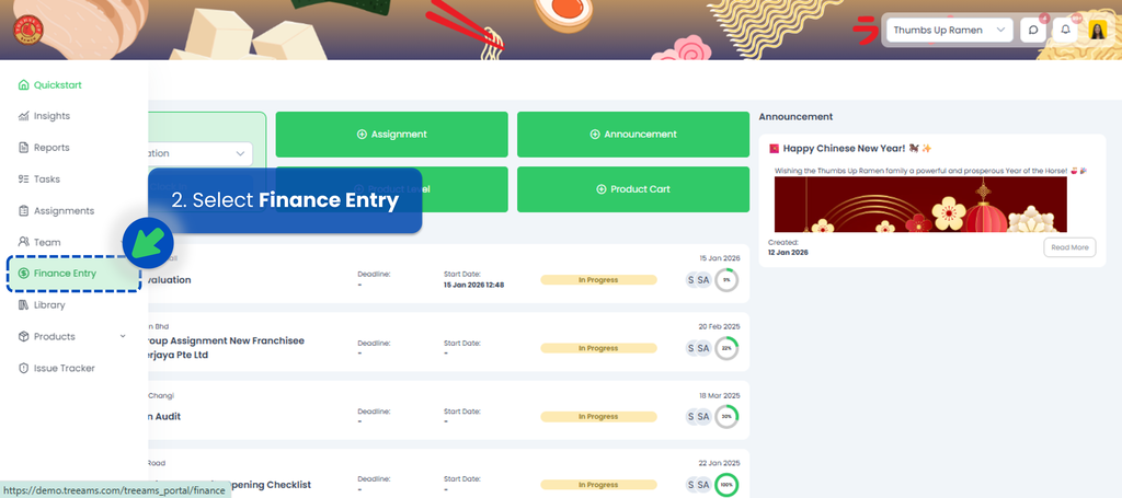 - From the sidebar menu, select Finance Entry.