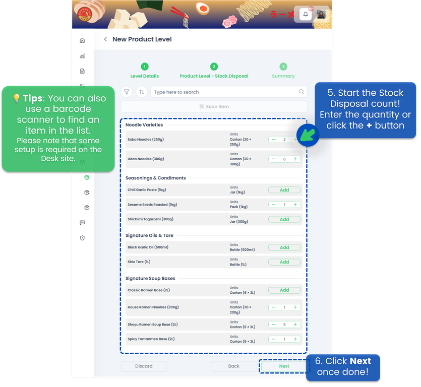 - Start the Stock Disposal count! Enter the quantity or click the + button