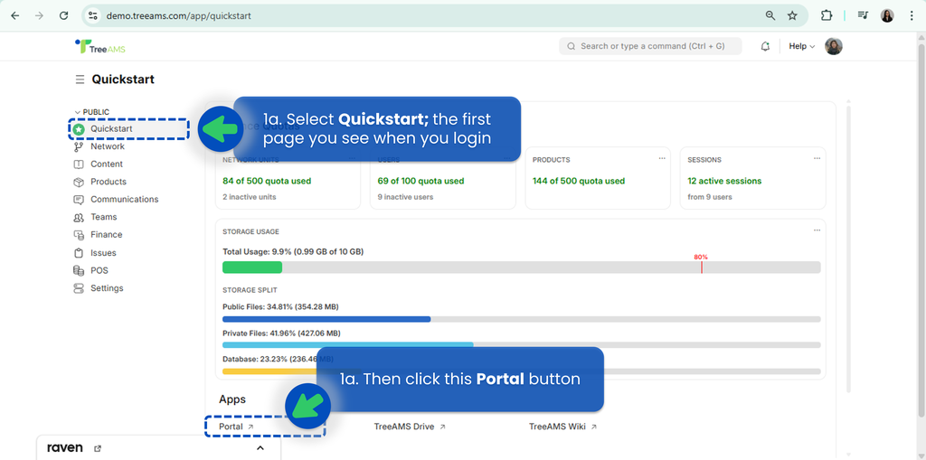1a. Go to Quickstart and click Portal.