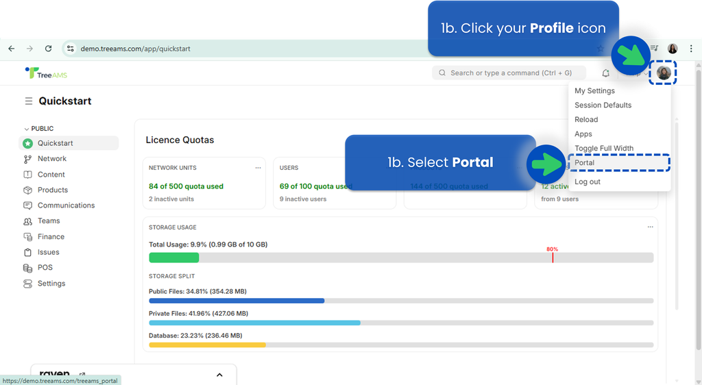 1b. Click on your Profile icon on the top-right corner and select Portal.