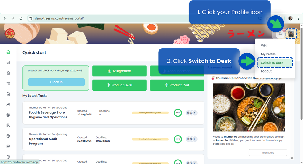 - How to switch to Desk from Portal